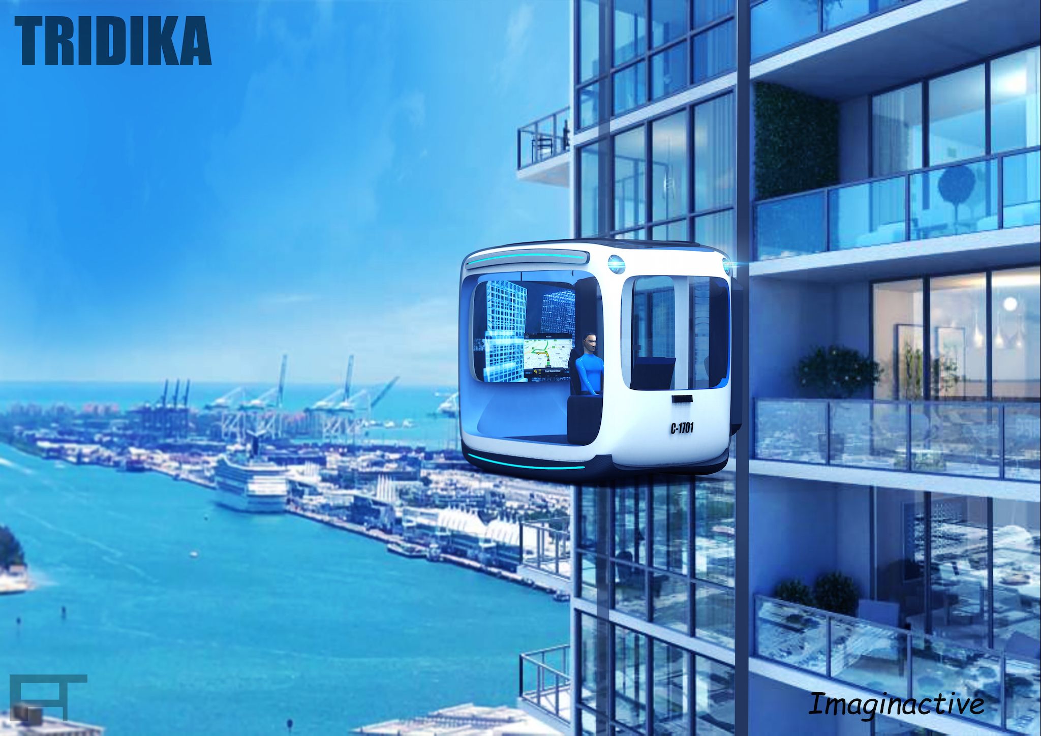Connecté à une rampe dédiée sur la façade du bâtiment, il peut s’élever jusqu’à n'importe quel étage. Les rails transversaux lui permettront de se déplacer latéralement ; un besoin de plus en plus présent sur les gratte-ciel modernes aux formes complexes.