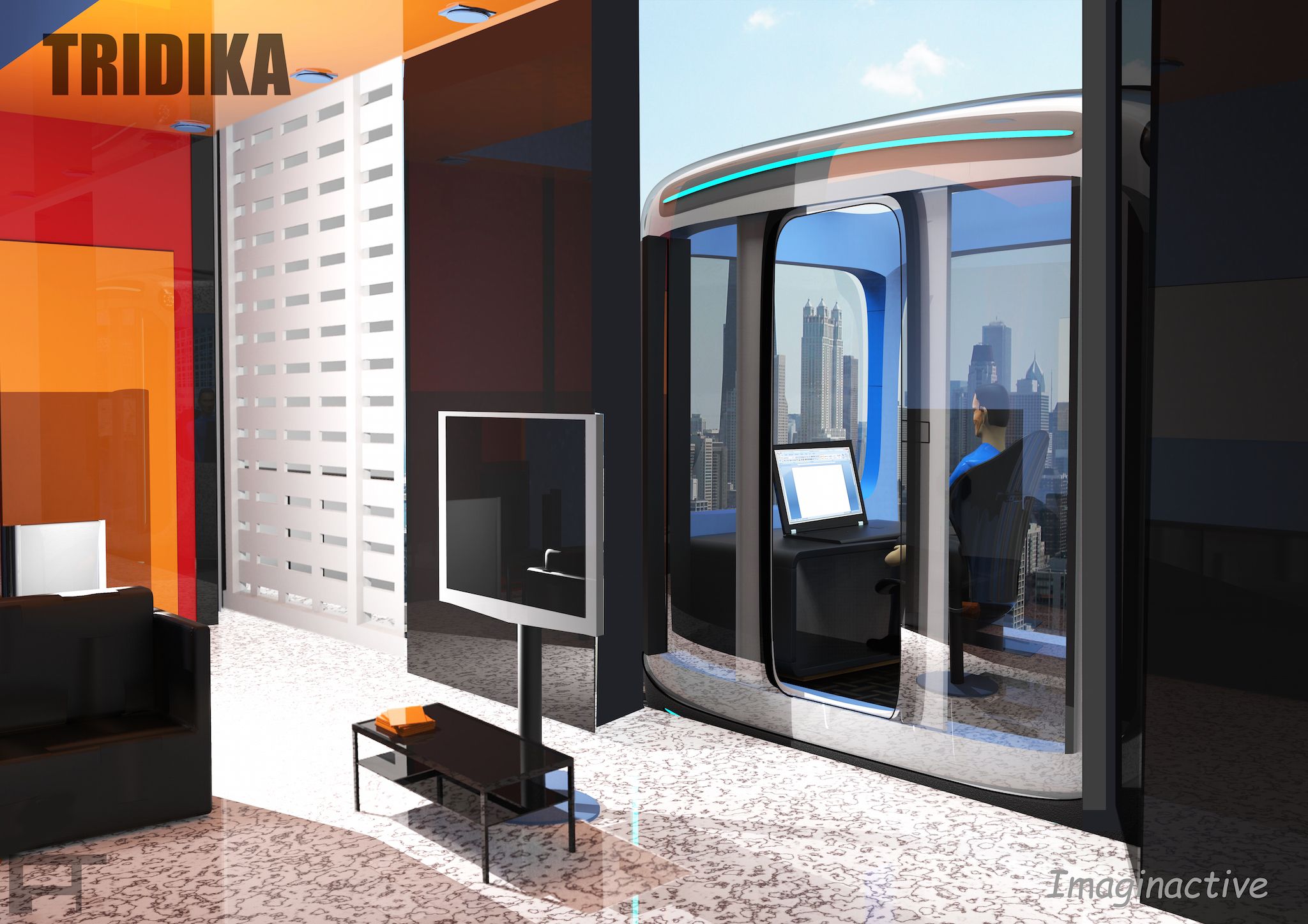 Une grande porte coulissante située sur le côté de l'ascenseur s’ouvrirait pour vous laisser entrer dans votre appartement. Une porte similaire à l’intérieur de votre résidence s’ouvrirait en même temps par détection de la signature cryptée de votre Tridika ou de votre téléphone intelligent.