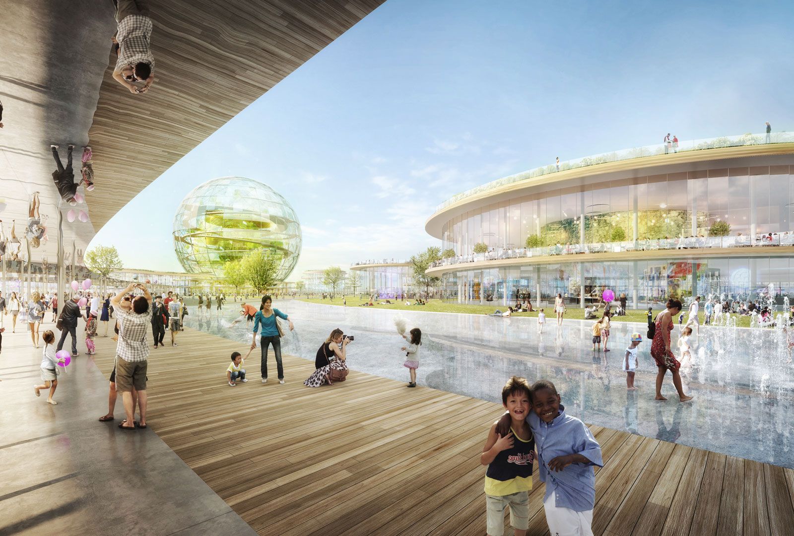 Expo Universelle PARIS 2025La coordination entre l’eau, la circulation, les typologies et le paysage va permettre la concordance de ce plan. Tout un parcours a été imaginé pour transporter en immergeant les visiteurs, de la gare à l’entrée du site par l’intermédiaire de l’élément « EAU ». Un parcours ludique a été conçu guidant les visiteurs du nord au sud de l’exposition, d’où va partir 2 sens de circulation : un qui prend un chemin direct de l’eau alors que le second propose une promenade plus lente et d’observation permettant de découvrir les animations du site.