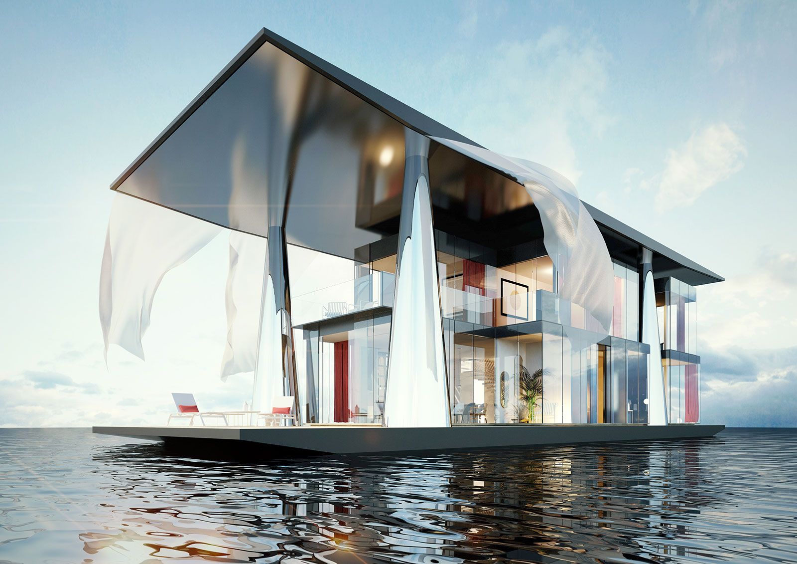 « Vivre et habiter l’eau. Pas à travers un bateau qui devient une maison, mais une maison qui peut dialoguer en permanence avec l’eau, la mer, ses variations, ses valeurs énergétiques … » AF