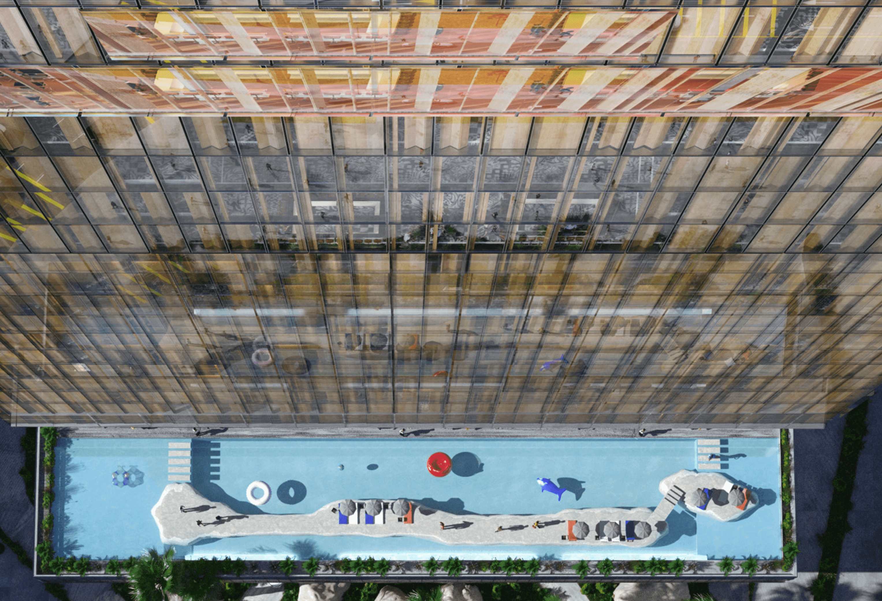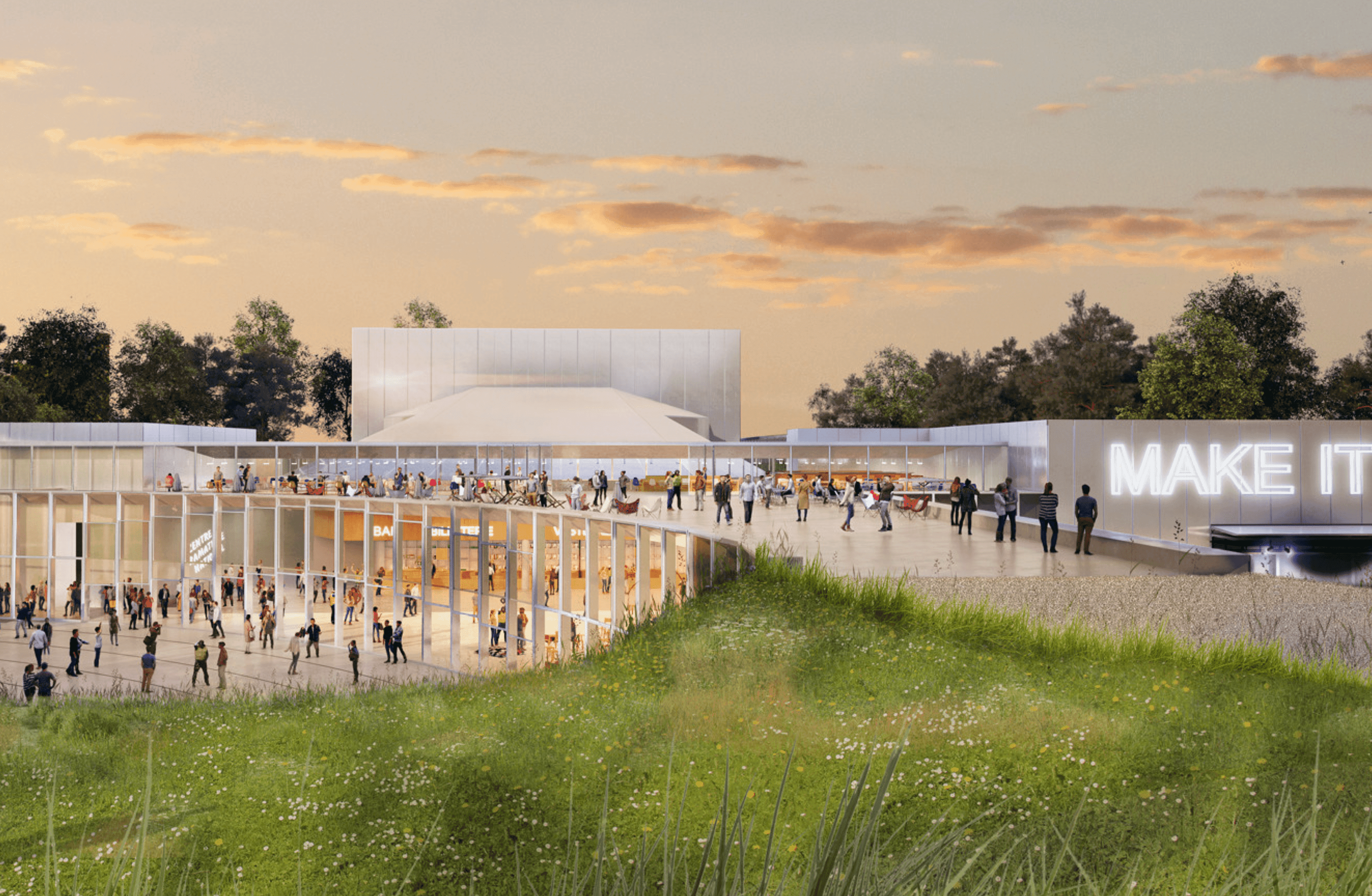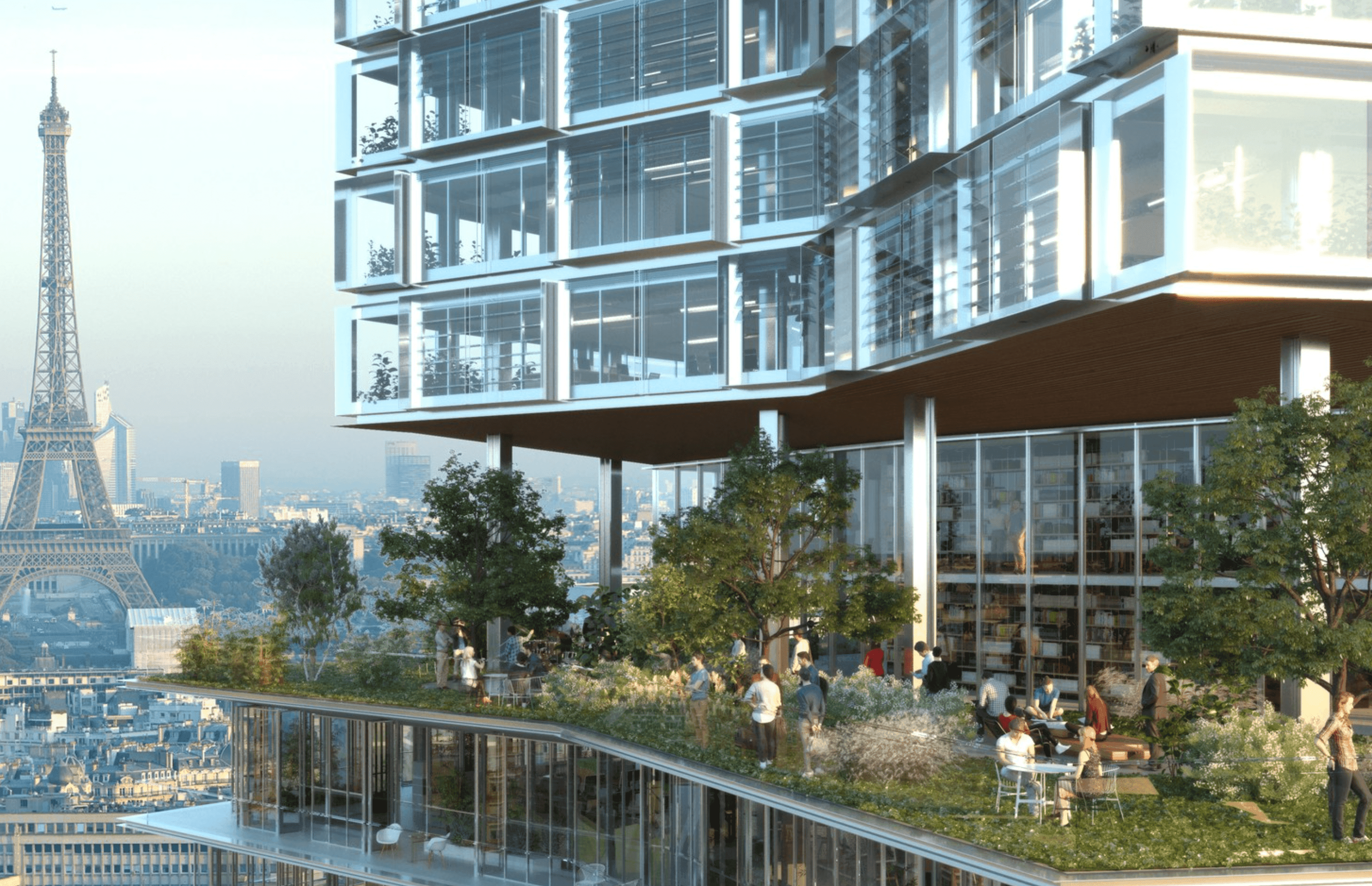 Rénovation de 120 000 m2 prévu pour 2024 comprenant un hôtel, des bureaux, un restaurant et une serre agricole événementielle. L’idée est que la tour soit en osmose avec le climat, le vent et le soleil et autonome en énergie.