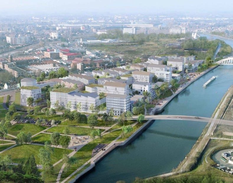 Découvrez Quai 22, le nouveau projet urbain à Saint-André-lez-Lille, au bord de la Deûle. Le projet dessiné par Nicolas Michelin comptera 700 logements et sera achevé en 2025.