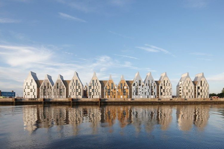 C’est une ancienne base sous-marine bordelaise qui a servi de site à cet ensemble de logements « docklands ».