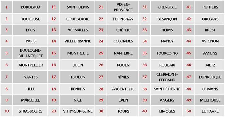 Le TOP 50 établi ci-dessus par le Laboratoire de l’Immobilier est le fruit d’une réflexion (plutôt intense dira-t-on) pendant laquelle les 50 plus grandes villes de France en terme de démographie ont été jugées sur plusieurs critères :
