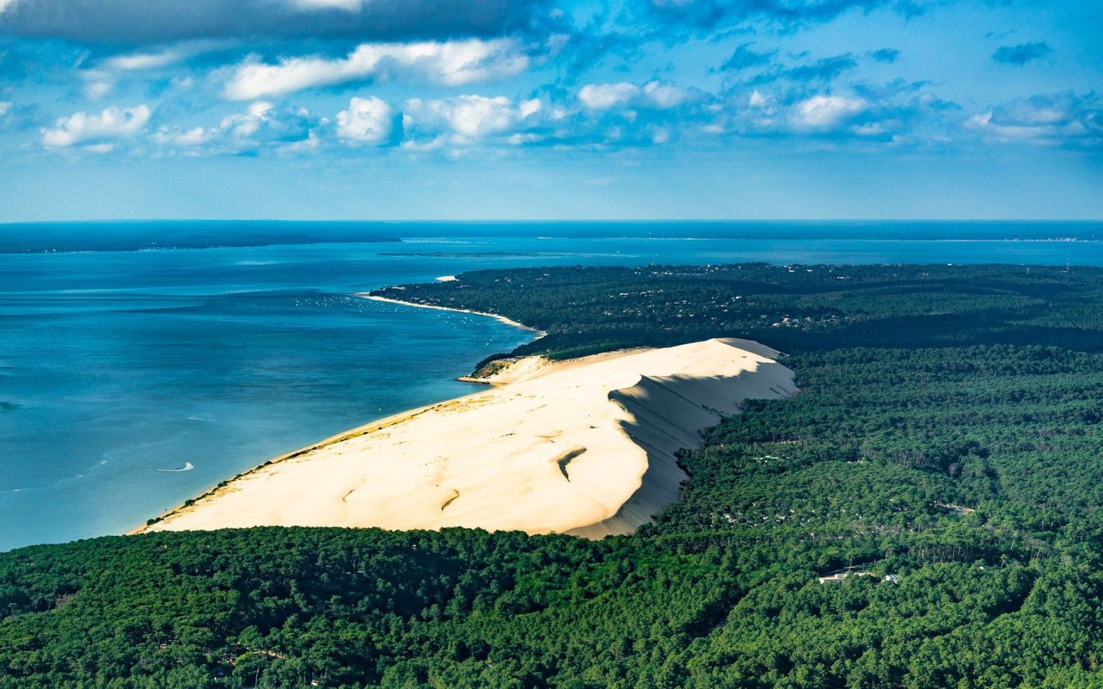 La Dune du Pilat, située en plein coeur des Landes, domine le bassin d’Arcachon ainsi que l’océan Atlantique. Elle est réputée pour être la plus haute dune d’Europe (110 mètres de haut et 615 mètres de large). Elle offre une vue exceptionnelle entre terre et mer.