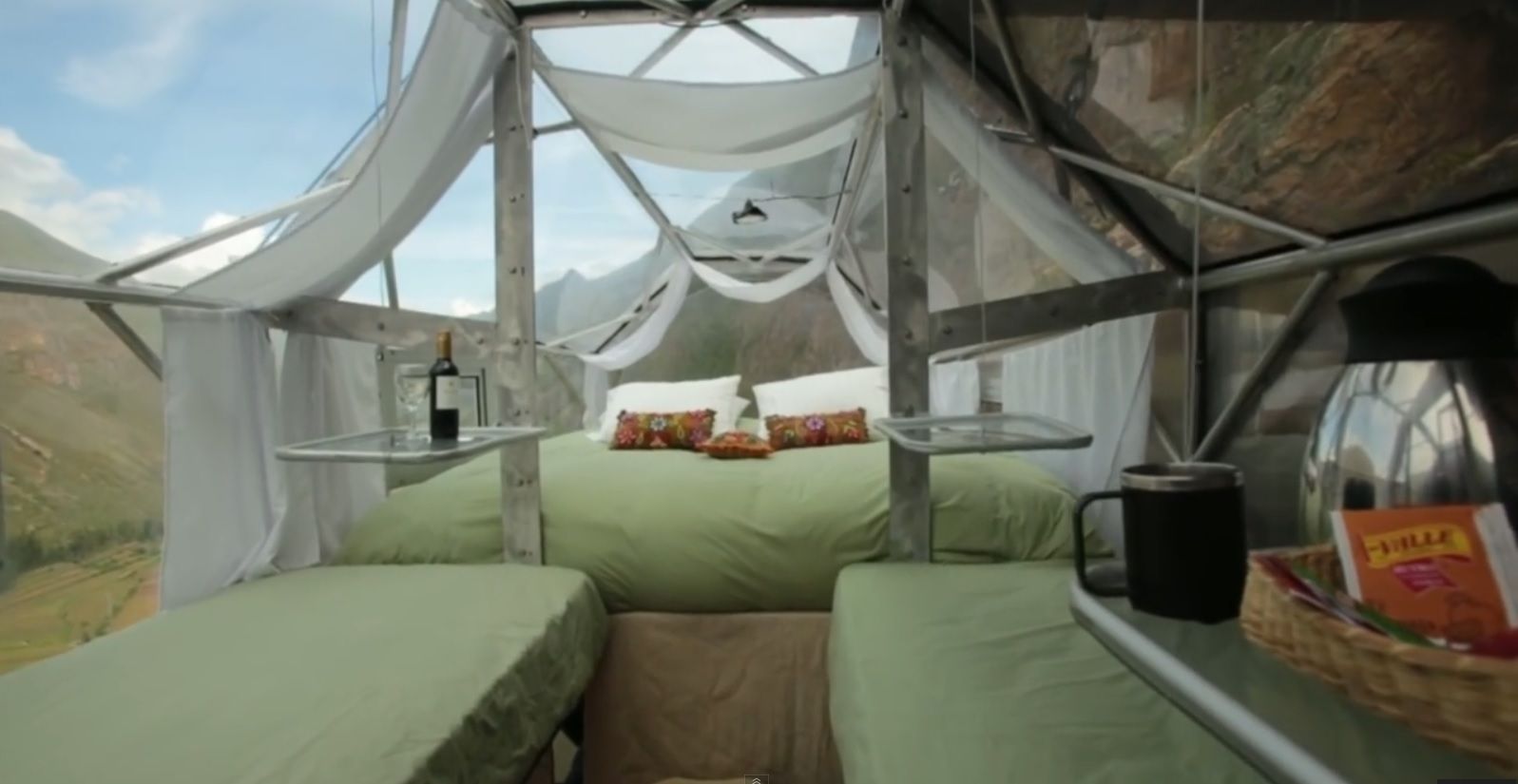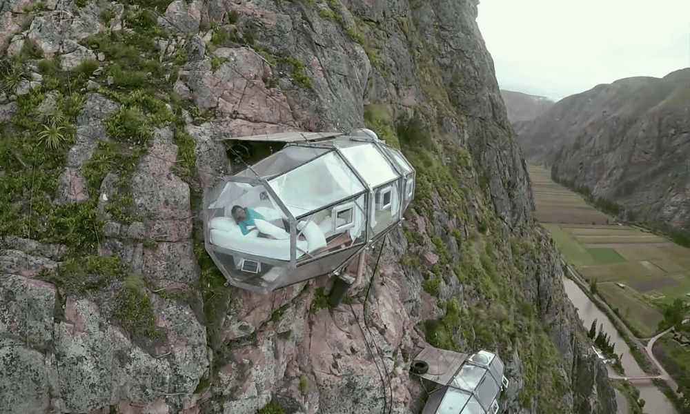 Le principe des Skylodges Adventures Suites est simple. Ces capsules fabriquées en aluminium et polycarbonate ne sont accessibles uniquement via l’escalade de la montagne ou via des tyroliennes à vous couper le souffle.